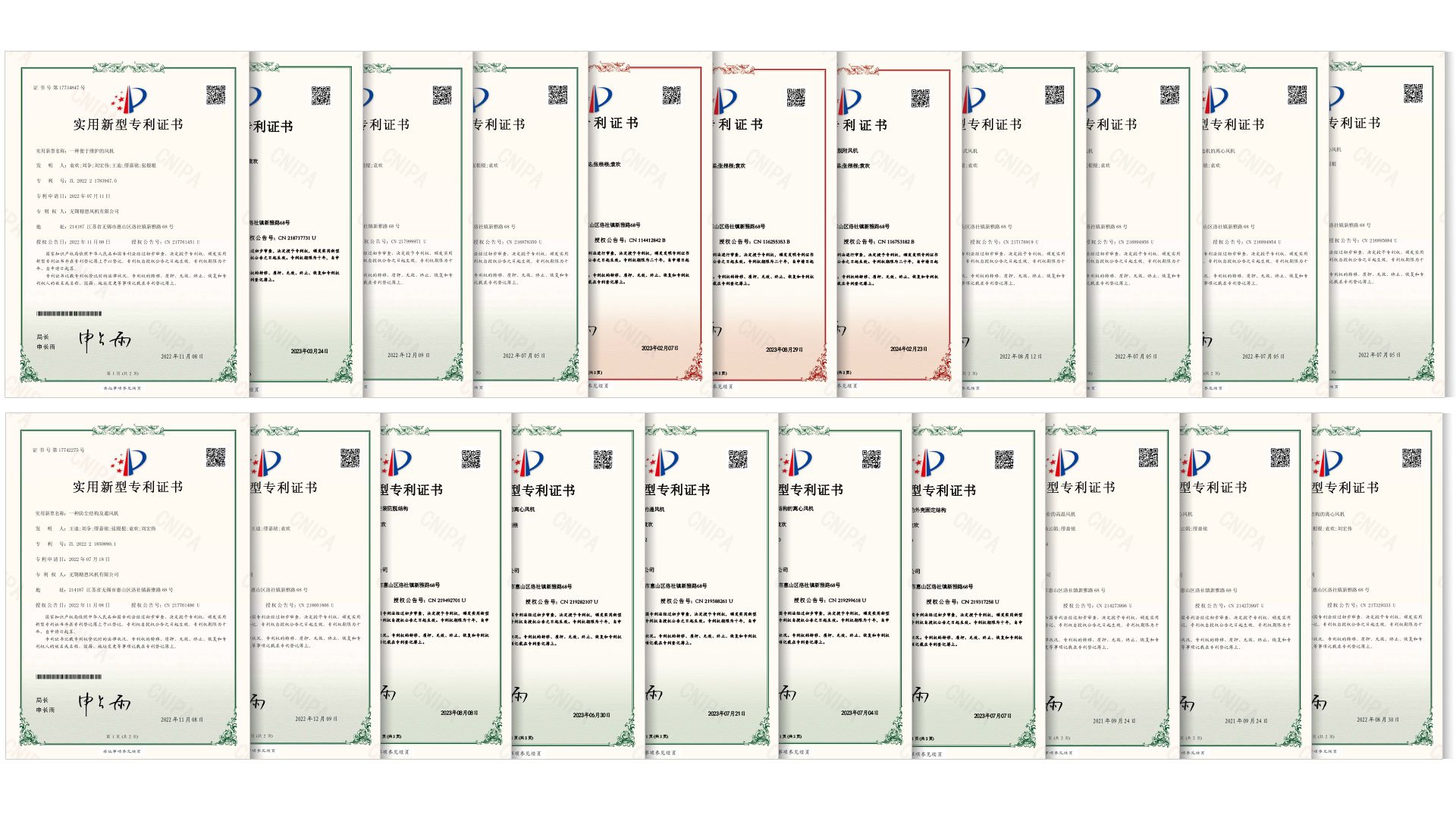 公司拥有专业的技术研发队伍,运用计算机CAD、三维机械等软件辅助设计,取得了将近40项的自主研发授权的 专利技术,能为客户提供各种通风机的需求。公司技术部与浙江大学、西安交通大学保持良好的沟通合作关系。